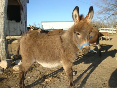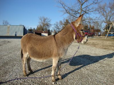 Dolly is now retired and at her new home near Kearney, NE. She is living the good life with a new donkey friend and a heated barn!